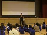 はじめに、警察署の方から「防犯」についてのお話がありました。登下校中や放課後など、日常生活の中でどのように自分の身を守ればよいか、子どもたちは真剣な表情で耳を傾けていました。