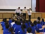 本日、講師をお招きし、交通安全教室を行いました。 あいにくの雨模様となったため、運動場での実技に代わり、体育館での実施となりました。